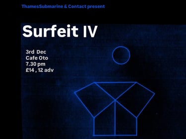 Contact and The Thames Submarine present Surfeit IV, a celebration of music, film, sound and performance featuring: Angharad Davies, Athanasios Argianas, Clementine, Beanie Bhebhe, Jim Hobbs, Ojon, Merkaba Macabre, Edwin Rostron, Zara Joan Miller, Deniz Johns, Martin Zeilinger, Yi Ting Liong & Adam Coney