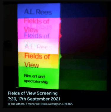 Friends, colleagues and past students of Al Rees have contributed one-minute films and videos to celebrate his posthumous book Fields of View* and the spirit of the man who was an ardent supporter of experimental cinema. Many have made new pieces for the occasion and responded directly to key terms and ideas that they found in his writing.