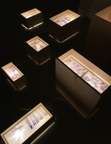 Series of seven LED Lightboxes (photographic transparency, birch faced ply, perspex); installation - New Art Projects, London