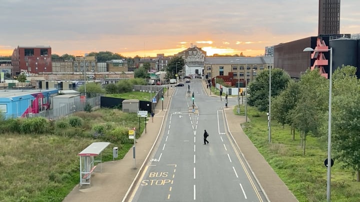 An omnipresent vantage-point: Individuals - on foot, cycling, in cars - traverse the landscape, which is part of Hackney Wick's post Olympics’ ‘redevelopment’, their movement forms a map of transitory and otherwise invisible intersection.